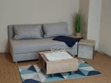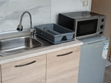 Топла, средна, южна, обзаведена гарсониера, с удобна локация!Жилището се намира на трети в седем етажна жилищна сграда с асансьор, контрол на достъпа и добре поддържани общи части. На площ от 47 кв. м. включва: кухня- трапезария с горни и долни кухненски шкафчета /нови/, готварска печка с абсорбатор, маса за хранене, хладилник, в хола- голяма двуместна спалня, единично разтегателно легло, холна маса, секция, телевизор. Санитарен възел- оборудван, голяма тераса, наличие на килер. Дограмата е ПВЦ, подовите настилки са ламинат, теракот и балатум. Районът е комуникативен, в близост до Молове, Автогара, автобусни спирки, детски заведения, магазини и други удобства, на пешеходен достъп до Центъра. В района се паркира спокойно. За наемането на апартамента са нужни един наем и възвръщаем депозит. Без домашни любимци и чуждестранни граждани. За оглед: Брокер Мария Минчева тел: 0896 60 21 21, с ключ в офиса