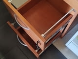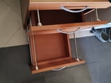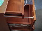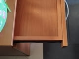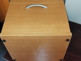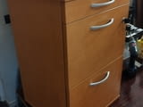 Продавам Шкафче за бюро - контейнер със заключване на двете чекмеджета ширина 42, 5 см /дълбочина 40, 5см / височина 68, 5см. Шкафчето е много запазено като ново с дебел плот, механизмите работят без проблеми както и ключалката. Цвета е черкеникаво кафяв - череша. няма колеата а нивелиращи се крачета .