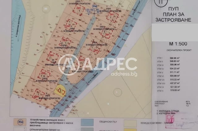 За един от парцелите (УПИ VI - продаден) има одобрен проект за едноетажна къща с влязло в сила разрешение за строеж, което е валидно до м. май 2027 г. на основание чл. 153, ал. 3 от ЗУТ.