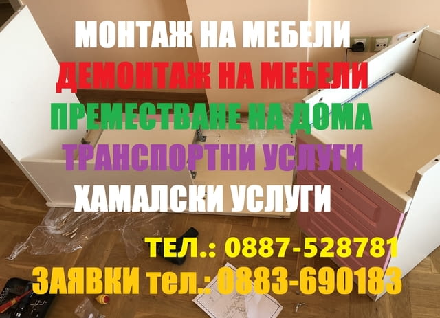 Демонтаж и монтаж на мебели в Плевен Конструкт. Преместване на дома и офиса а, , бус