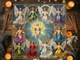 Изкуство Единадесет ангели окръжаващи Свещено събрание.