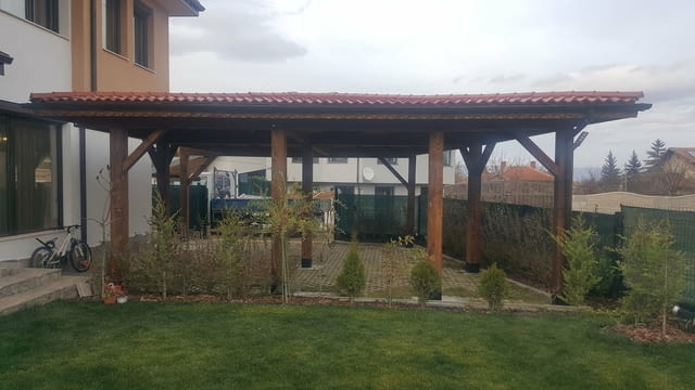 Навеси беседки градински къщи козирки перголи веранди дървени конструкции