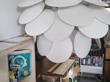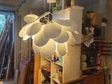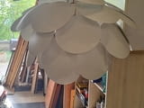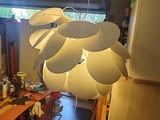 Продавам голям дизайнерски полилей стил Marset Discocó с три крушки и размер ширина 80см и височина 60см това е само осветителното тяло. Отделно са въжетата и кабелите, Крушките са с цокъл Е27 материала е метални бели листа и иноксови дръжки на листата. Полилея е запазен цената 152€ е за брой, имам налични две бройки.