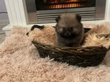 Померан на девет седмици, най-високо качество. Три пъти е почистен от паразити и е получил две ваксини. Всяко кученце се предлага с чип, паспорт, клиничен преглед от ветеринарен лекар и стартов пакет гранули. Родословието се заплаща допълнително с 50 евро.
