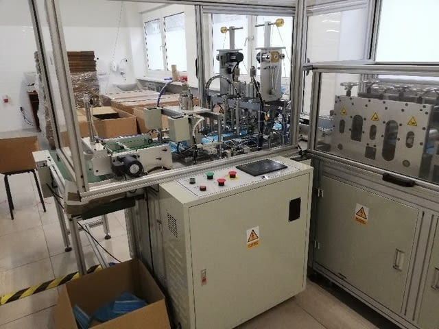 Предлагаме леко употребявана, в отлично състояние и напълно запазени технически параметри, съвременна високотехнологична поточна линия за производство на медицински маски.