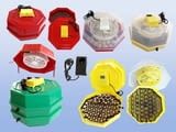 Продавам инкубатори, с показване на температура и влагомер, официален вносител на завода , за люпене на (кокоши, пуйчи, гъши, патешки, яребици, фазани, пъдпъдъчи, щраус, птица ему) и др. яйца, полуавтоматични тип люлка. броят на яйцата за люпене зависи от вида на птицата. Въртенето на яйцата става с помощта на ключ, който завърта едновременно всички гнезда под наклон от 45*, 2-3 пъти на ден! Температурата се постига автоматично(заводско) до 37.2 – 38.4 градуса. Има възможност и за ръчно регулиране на температурата!!! Тези инкубатори имат външни ванички за по-лесно наливане на водата в инкубатора!