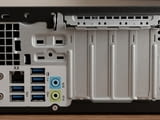 Заден панел: 6x USB 3.0; 1 x serial; 1 x PS/2 keyboard; 1 x PS/2 mouse; 1 x audio line-in; 1 x audio line-out; 1 x LAN (Gigabit Ethernet); 2 x DisplayPort; 1 x VGA