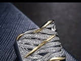 Уникален блестящ моден пръстен в стил Ретро широк модел в покритие от злато и сребро със силно искрящи бели сапфирчета (за съжаление снимките не отразяват ефекта им! )