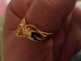 Моден романтичен позлатен в жълто злато пръстен представляващ гола двойка правеща любов.