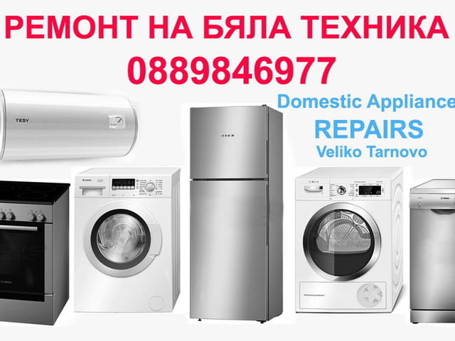 Ремонт / монтаж на перални, електрически бойлери, сушилни, съдомиялни, хладилници и електрически готварски печки, по домовете. Посещение и диагностика при отказан ремонт - 25 лв. Важи само за Велико Търново.