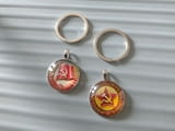 Сет от два броя ключодържатели-медальони с двойно предназначение: Сърп и чук на фон на червено знаме.