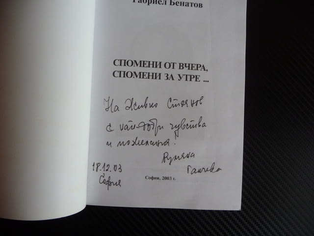 Спомени от вчера, спомени за утре... Габриел Бенатов. С послание от автора.