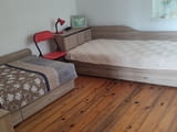 Предлагаме три стаи на горния етаж на къщата, като сме запазили първоначалното им функционално разпределение. Подът нарочно е запазен в оригиналния си вид – дъбово дюшеме, което придава особено приятно усещане за топлина и уют. Достъпът към трите стаи е с отделен вход. Една стая е с 3 единични легла, друга е с 2 единични и с възможност за трето сгъваемо (достатъчно удобно) легло, а третата е с едно единично легло.