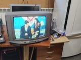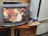 родавам цветен телевизорът е модел Samsung CK - 20S1TB - 20 инча. Телевизора е работещ няма дистанционно, може да се ползва като екран за кабелна телевизия. Ако имате декодер за цифрова телевизия може да хващате ефирни програми които са около 6-7 бр. зависи в коя част на страната се намирате. Забележката е че в долната част има счупена пластмаса от корпуса, но това не пречи на телевизора. Телевизора работи на скарт букса и на чинчове.