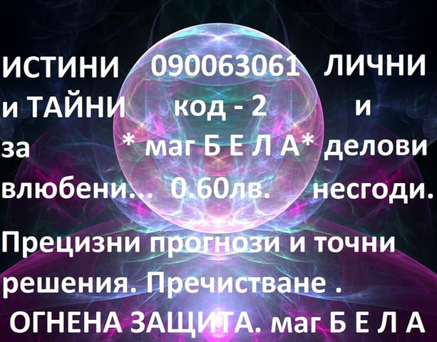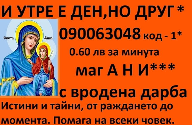 100% ЧИСТО ЯСНОВИДСТВО с точната АНИ о9оо63о48 с доказани способности, точен отговор на всеки ваш въпрос. Как да привлечеш благоденствието и късмета, тя знае как да го направи. Подобряване на жизненият ви статус, откриване на ново работно място, защо не ви върви в любовта, късметът бяга от вас, близките хора ви обръщат гръб. Ретроградната планета ви се отразява зле , как да спестите неприятности около себе си в интимен и работен план и т.н.