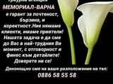 Траурна агенция "Мемориал-Варна" организира погребения, кремации и панахиди качествено, бързо и на най-ниски цени! Потърсете ни при нужда! Тел.: 0886 58 55 58