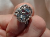 Внушителен и уникален моден троен пръстен с череп с искрящи червени очи. Обвит е в бодлив венец.