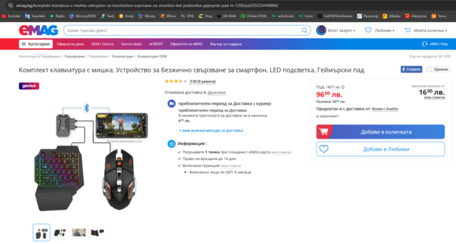 Тип продукт: Клавиатура, Мишка, Устройство за безжично свързване, Кабели;