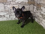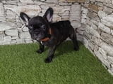 с гордост представя кучило кученца френски булдог.