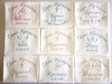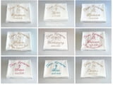 С избор на цвят и шрифт (ръкописен/църковен/печатен) на бродерията, части - за комплекти.