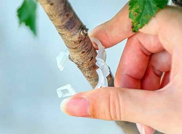 Щипката позволява здраво и сигурно закачване на растението към подпорната конструкция