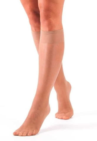 прозрачни, еластични три четвърти чорапи с удобен маншет (завършващ ластик) и с уплътнени пръсти (с ограничители на пръстите)