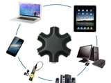 3.5мм аудио адаптер който притежава 6 изхода на 3.5mm. В единия изход се включва кабела а в другите 5 могат да се включат до 5 броя слушалки, колонки или други подобни.