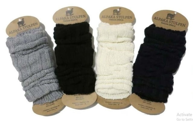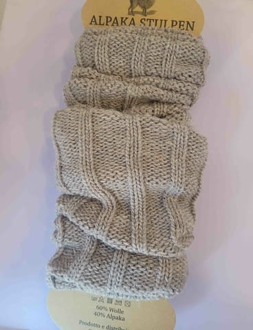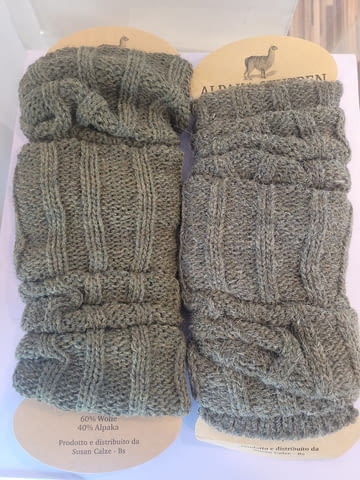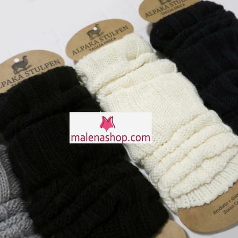 Susan Calze Alpaka Stulpen дамски вълнени калци от глезени до колена, произведени от италианската марка за вълнени гети Susan Calze. Калците са топли, меки и са изработени от висококачествени фини прежди от вълна в комбинация с алпака вълна. Подходящи са и за подгревател на ръце. Алпаката от вълна е мека, лека, топла и задържа и изолира топлината; съдържа 24 естествени оттенъци, т.е. не е нужно допълнително третиране за оцветяване на гетите; не се бръчка и не се разтяга. Калците са произведени в Италия. Цената е за 1 чифт = 2 бр. чорапи.