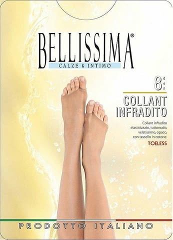 Bellissima Infradito гладък, матов и много тънък чорапогащник с плътност 8 DEN, произведен от италианската марка за чорапогащници за отворени обувки Bellissima / Белисима. Цената е за 1 бр.