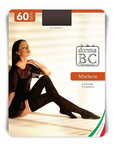 Donna BC Marlene 60 гладки чорапи с ластик с плътност 60 DEN на италианската марка Donna BC ( Донна БС ). Продуктът представлява плътни чорапи със завършващ широк ластичен лант; не е необходим жартиер, за да се носят; уплътнени пръсти. На всеки един артикул е удостоверено, че артикулът е Произведен в Италия (Made in Italy) с италианско знаме като доказателство за произход. Цената е за 1 чифт - 2 броя чорапи.