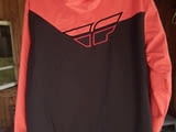 Fly Racing леко яке с качулка, вероятно е предназначено за дъжд, снимките са малко светли и изглежда оранжево, но всъщност е яркочервено, размер L, дължина отзад 73 см., обиколка около 132, гръб 55, ръкав отгоре 70 и отдолу 53, цена: 59 лв.