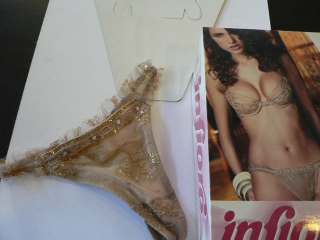 348 прашки с ниска талия, украсени със златиста и бежова бродерия и къдрава мрежеста дантела отстрани на талията, произведени италианската марка за дамско бельо Infiore/ Инфиоре. [ На непрофесионалните снимки е размер S ]. Цената е за 1 бр.