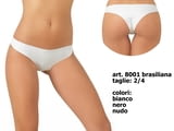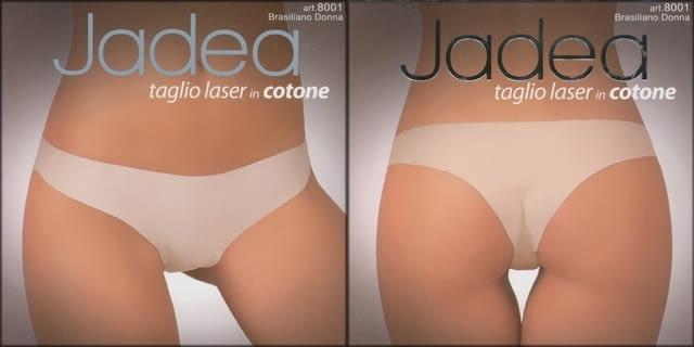 Jadea 8001 памучна безшевна полупрашка / бразилиана с нормална талия, изцяло лазернорязани с най-новата иновативна технология и памучни в същото време, осигуряващи висока дискретност и комфорт, произведена от италианската марка за дамско бельо Jadea / Жадея. Създадени да бъдат носени под фини дрехи, клинове, тънки рокли, полупрашките са създадени специално за привържениците на "бельо с невидим ефект". На вътрешния етикет на артикул е изписано, че е Произведен в Албания/ Made in Albania. Цената е за 1 бр.