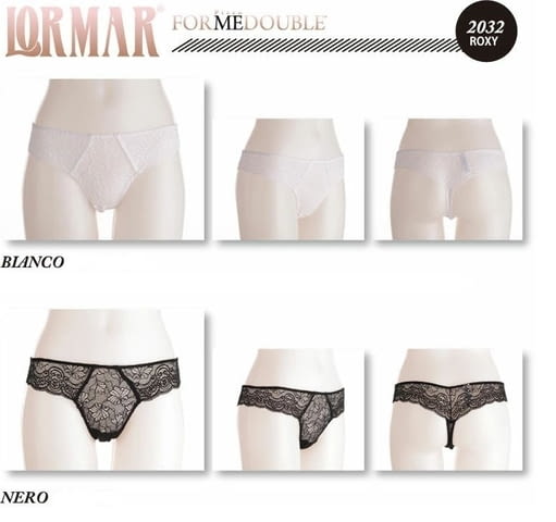 Lormar Roxy pizzo дантелени прашки с нормална талия, която подчертава женските форми, не е съвсем изрязана в предната и задна части, произведени от италианската марка за дамско бельо Лормар/ Lormar. На всяка опаковка е изписано, че са произведени в Италия/ Made in Italy. Цената е за 1 бр.