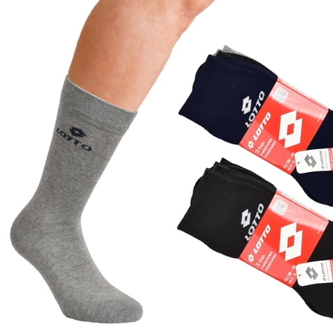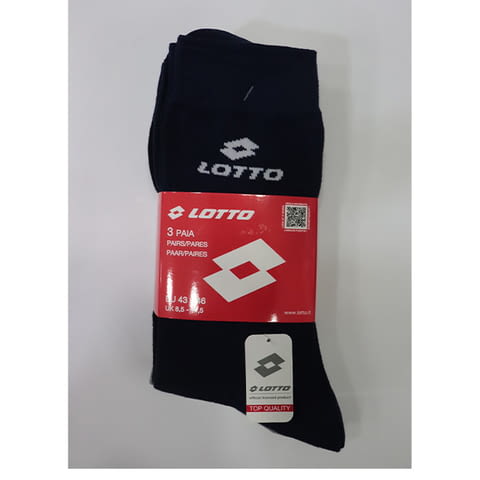 Lotto David унисекс памучни чорапи над глезените до средата на прасците, плътен стреч памук, едноцветни с малък надпис и лого на марката, с оформена пета, широк и еластичен завършващ ластик, произведени от италианската марка за памучни чорапи Lotto / Лотто. На всяка опаковка е изписано, че са произведени в Китай (made in China). Цената е за 1 чифт - 2 броя чорапи (на една опаковка има 3 чифта чорапи, но се продават отделно).