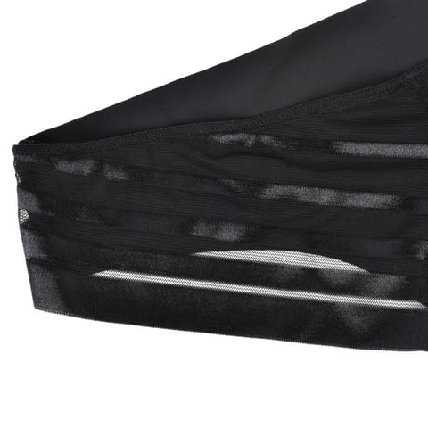 изработена от мек, гладък микрофибър отпред и хоризонтални ленти от прозрачен тюл и лъскав плат отзад