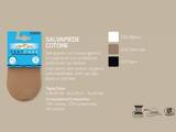 Salvapiede cotton touch унисекс памучни терлици със силикон, изработени от мек и позволяващ на краката да дишат памук, хигиенични, подходящи за носене и през най-горещите дни в годината, произведени от италианската марка за луксозни терлици със силикон OMSA/ ОМСА. Терлиците имат силиконова лепенка от вътрешната страна на петата, която не позволява на терлика да се изхлузва дори и при целодневно носене, а седи плътно залепен за крака; много фини краища против раздразнение на кожата и напълно невидими под обувките.
