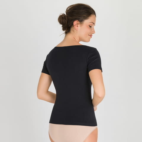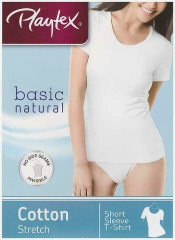 Революционната колекция Basic Natural на марката Playtex представя тази женска памучна тениска с къс ръкав. Тази блуза ще се запази сезони напред и ще оцелее над модни тенденеции, за да се превърне в задължителен елемент на Вашия гардероб. Тениската с къс ръкав, съчетана с женствен стил, Ви предлага комфорта, за който винаги сте мечтали благодарение на своята мека, устойчива на износване фина памучна материя. Черешката на тортата са липсата на странични шевове и наличието само на няколко плоски шева, които я правят невидима под всяка дреха. Няма да можете без тази тениска в ежедневието си!