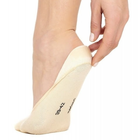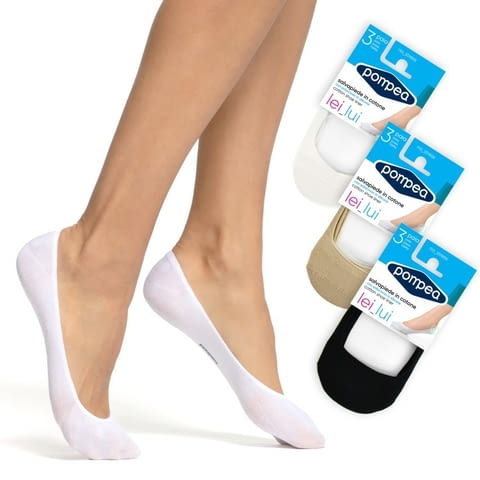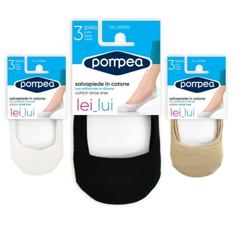 Pompea Salvapiede cotton унисекс памучни терлици с противоплъзгащ силикон, поставен върху петата, за гарантирано залепване на крака, произведени от италианската марка за памучни балеринки Pompea / Помпеа. Цената е за 1 чифт - 2 бр. чорапи.