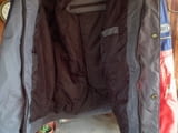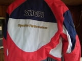 Мото яке Shoei, размери L, дължина отзад 65, обиколка около 125, гръб 55, ръкав отгоре 65 и отдолу 50, добро състояние с дребни козметични забележчици, изработено от полиамид и вероятно е предимно за мокро време (с водоустойчив джоб на ръкава), има твърди протектори на лактите и раменете и мек на гърба, цена: 109 лв.