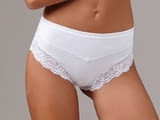 Lovelygirl 3669 памучни бикини с висока талия, допълнителен вътрешен панел в коремната област за леко оформяне и прибиране, произведени от италианската марка за женско памучно бельо Lovelygirl / Лавлигърл. Шевовете по краищата са вътрешни и не дразнят кожата, което прави модела удачен за носене от дами с нежна и чувствителна кожа, както и по време на бременност и същевременно дават максимална свобода и комфорт при движение, а дантелата около бедрата не позволява протриване при по-пълни крака. На всеки вътрешен етикет е изписано, че продуктът е произведен в Италия ( made in Italy ) или че продуктът е произведен в Албания ( made in Albania). Цената е за 1 бр.