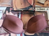 Seimia7893 сутиен твърда чашка с гел подплънки +1 РАЗМЕР с банели от италианската марка за дамско бельо Seimia / 6mia. Продуктът представлява гладък сутиен с кадифени презрамки в същия цвят, сатенена панделка между чашките и украса от по-тъмно тъмнокафяво кадифе със златисти камъни. Оптимален пуш-ъп ефект. Цената е за 1 бр.