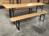 Сгъваем бирен сет, изработен от дървесина с дебелина 25 мм и метална прахово боядисана рамка. Състои се от сгъваема маса и две сгъваеми пейки. Практично решение за двора и градината, както и заведения на открито.