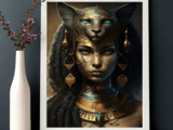 Египетската Богиня Бастет - Платно за Стена, Без Рамка 30.48x40.64см Плакат за Декорация на дома и офиса, Перфектен за спалня, всекидневна, кухня и още. За подарък.