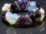 Ръчно изработена еластична двойна дамска гривна от естествени камъни Авантюрин, Гранат, Аметист, Перли и Лунен камък с оригинален дизайн от DANIMADE - модел DM-2216