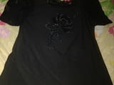 Модел с обло деколте, дантелени ръкави и апликация в бродерия