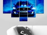 Атрактивна декорация, пано - картина за стена от 5 различни по големина части за феновете на красивите, бързи и мощни коли - Ford Mustang.