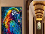 Модна декорация с екзотичен Папагал в свежи цветове.