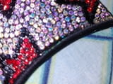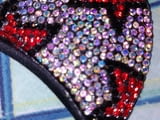 Диадема за коса с красиви ярко червени камъчета на фона на ослепителни камъчета тип ”хамелеон”.
