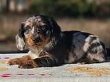 Дългокосмест дакел, момичета на два месеца и половина и едно по-голямо момче, получиха всички необходими ваксини, готови за вземане.